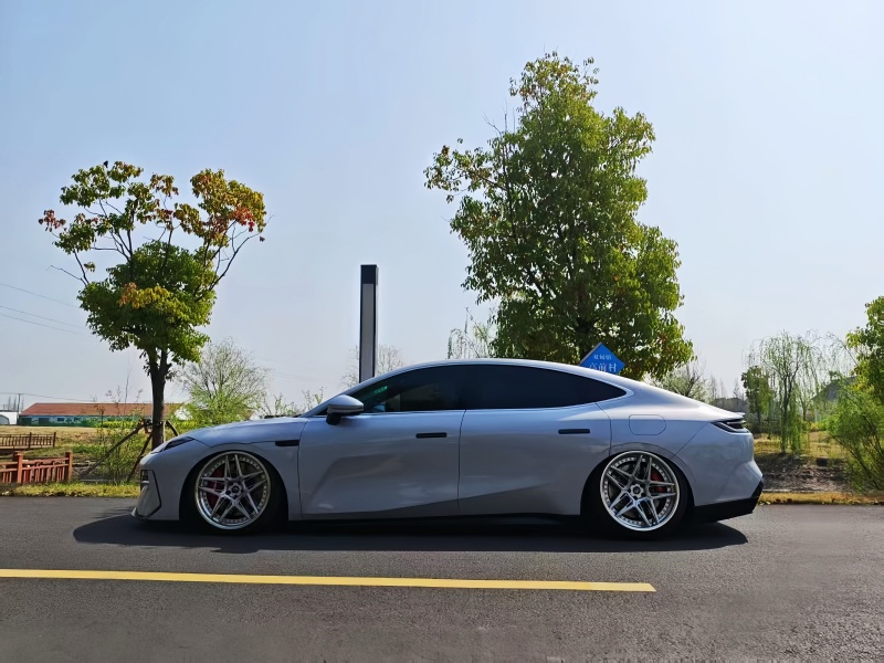 AIRBFT 空气减震赋予的不仅是外观上的震撼。车主只需轻触车内智能控制按钮,就能随心调整车身高度。在路况良好的城市主干道,将车身降至最低,享受贴地飞行般的极致操控体验,感受风驰电掣间的速度激情;遇到减速带或坑洼路段,轻松升高车身,从容应对,展现出实用与个性兼具的改装魅力。如此改装的吉利银河 E8,早已超越了普通交通工具的范畴,成为一件流动的艺术杰作,每一次出行都是一场独特风格的展示,彰显着车主与众不同的品味与对汽车文化的深度热爱 。